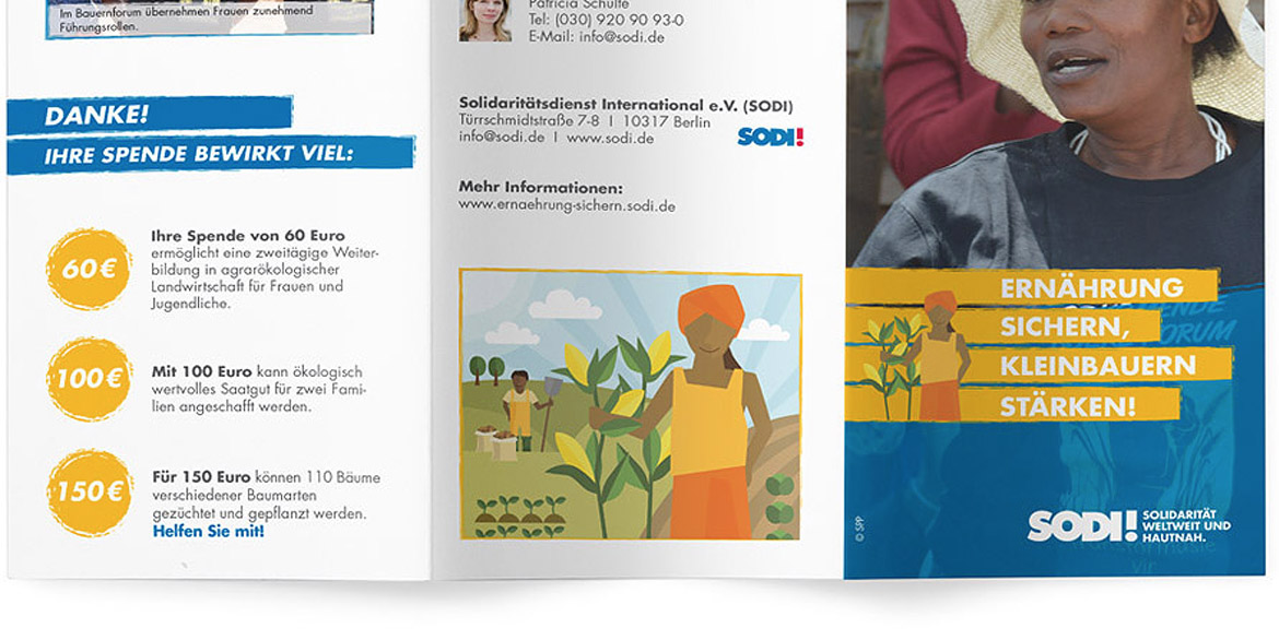 Für den Solidatitätsdientst International e.V. (SODI e.V.) entwickelte : : treicheldesign ein Spendenmailing.